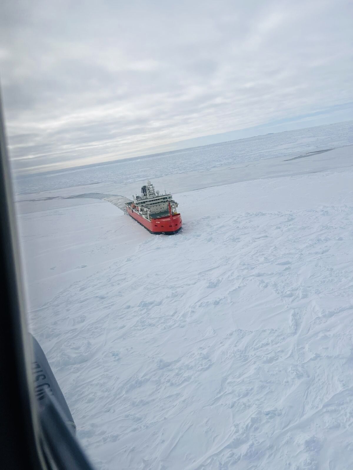 There was an air of anxious optimism as the ship approached within 100 nautical miles of station and we prepared for a day of aviation operations: seven helicopter flights bringing people and cargo. On this day, Mother Nature and the “A-factor” dealt us a winning hand — blue skies, light cloud, light winds, and a balmy –8°C on the ground.