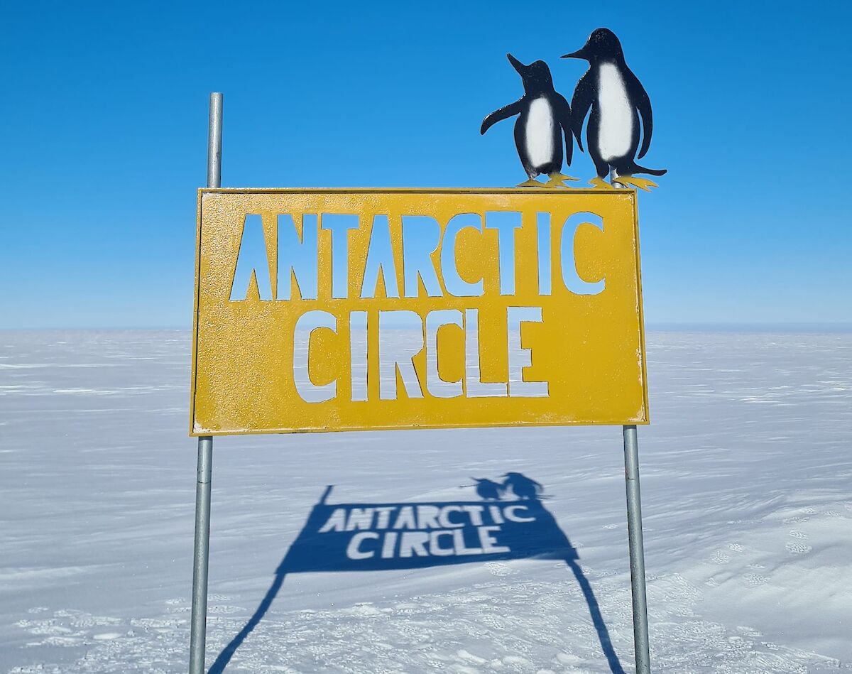 The Antarctic Circle sign, located roughly 50km from Casey station has featured in countless iconic expeditioner photos as an incoming or outgoing team trundles up or down the A-Line between Wilkins Aerodrome and Casey station during the flying season.