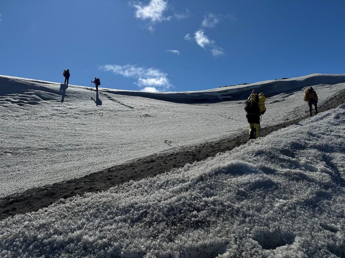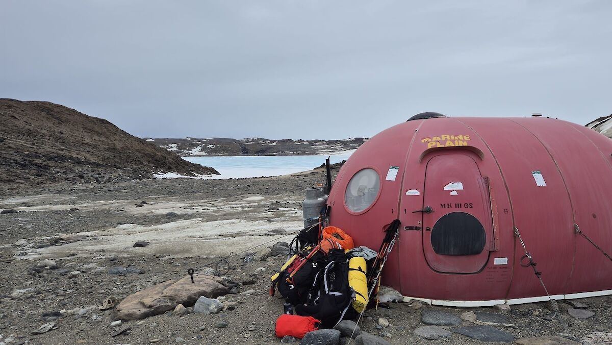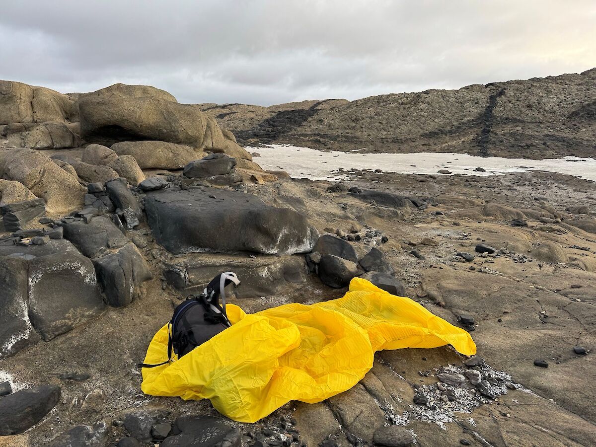 As we reached Marine Plain Melon (not actually a melon sadly, rather, a melon shaped hut) after a long day of hiking, the wind started to pick up. Just as forecast, of course. Inside the melon, the howling was almost cosy, with the refuge offering protection from the piercing, dry, ice-cold Antarctic winds outside. But the comfort was short-lived – we would soon be left to fend for ourselves outside with only a bivvy bag for company. Now, for those who don't know, a bivvy (or bivouac) bag is a makeshift shelter that can be used in a pinch during hazardous conditions in the field, such as a blizzard. The bivvy bag is affectionately known as the 'chip packet' - with its small size and bright yellow colour, ours had an uncanny resemblance to an empty bag of Twisties, though unfortunately without any delicious cheesy crumbs within.