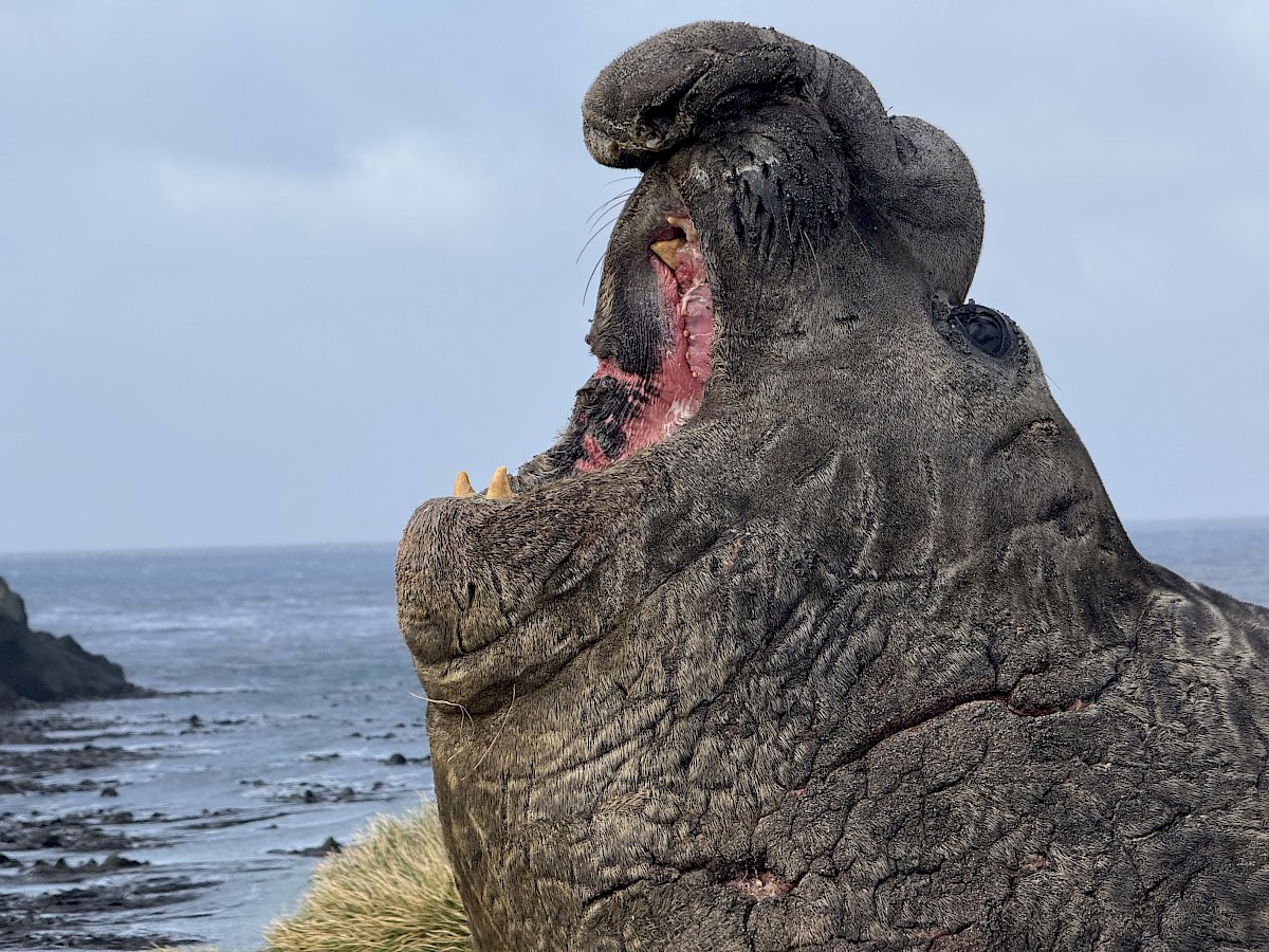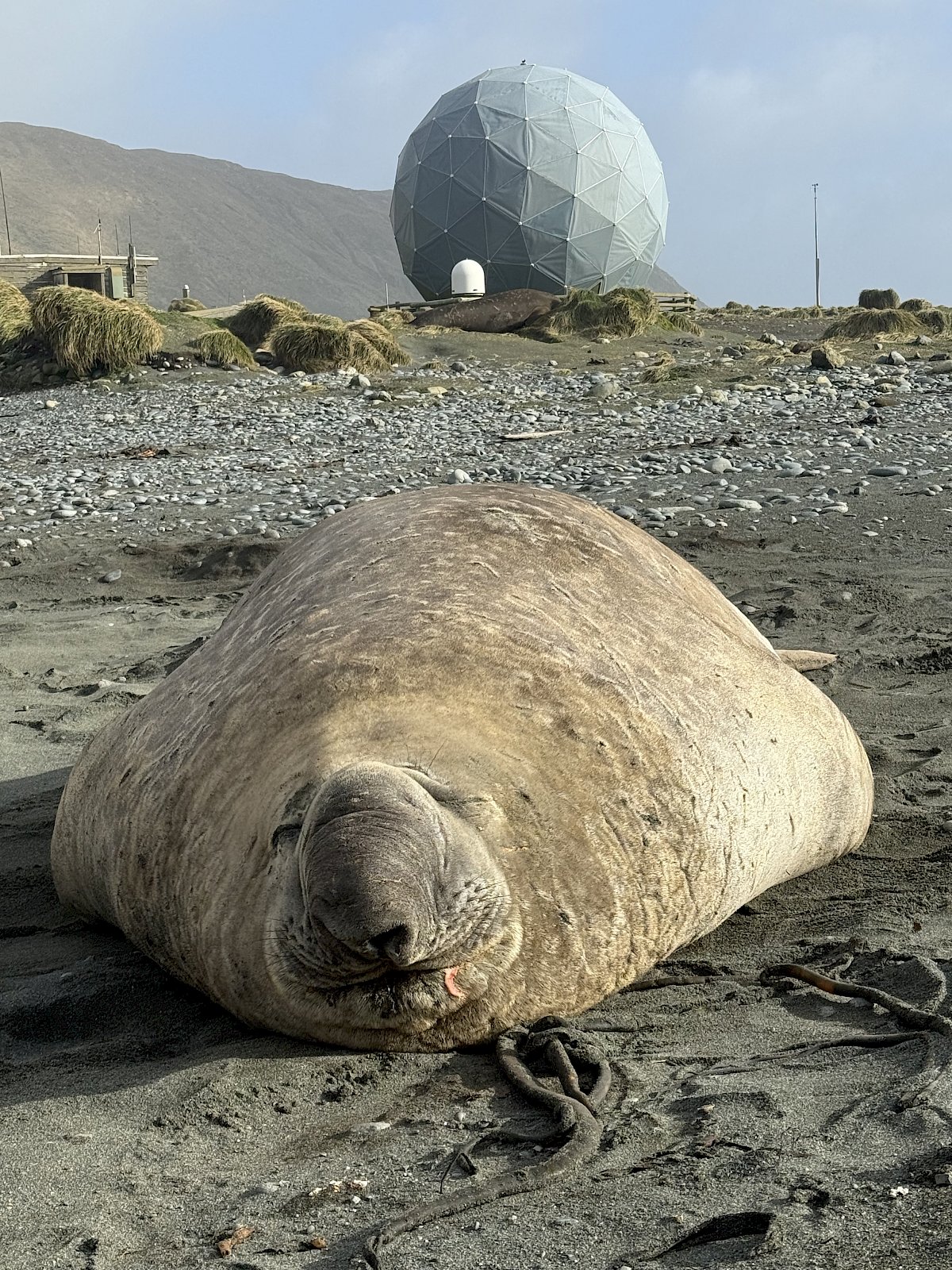 Our island home is a wild harsh place, relentless biting winds, rugged coastline, a place where nature reigns supreme. We share the isthmus with gentoo penguins, elephant seals, fur seals and numerous varieties of sea birds. The smell of salt and kelp is in the air, along with the unmistakable 'eau de penguin', Giant petrels soar and growl overhead and the elephant seals laze around like living boulders with their grunting, throaty roars.