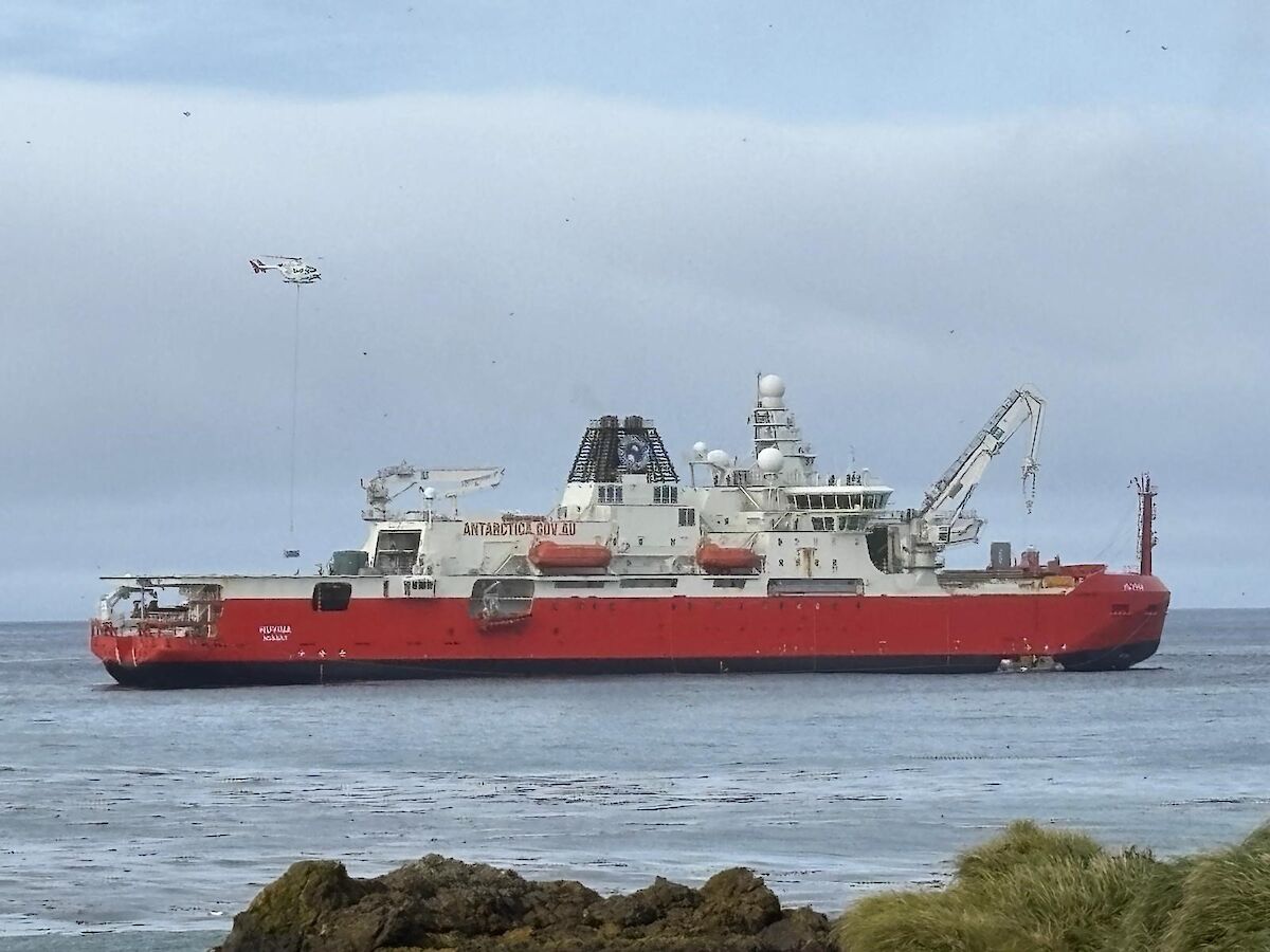 Early in the hours of 7 April, a group of 78th ANARE expeditioners stood up at the Ham Shack to await the arrival of the RSV Nuyina. At 0731 she sailed into view, a distant blob on the horizon. A short while later she was nestled in position and the “event” that is resupply started in earnest.