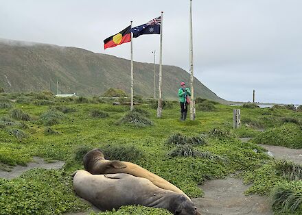 We had planned to hold a game of cricket in Market Square in the centre of station. However, ‘Bruce’, the local New Zealand sea lion had other ideas and decided he wanted to spend Australia Day basking in the sun and sand. Expeditioners are highly adaptable and cricket morphed into indoor table tennis in the Green Store. The late afternoon saw a spit roast, walks and general relaxation.